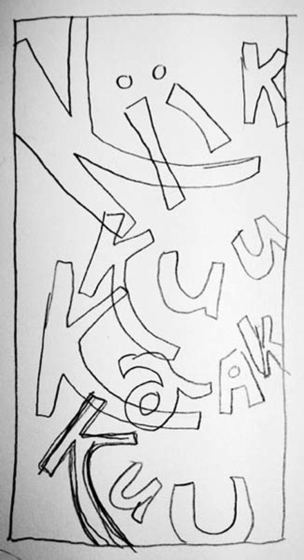 In Sketches I have used words kiikkuu kaakkuu. This rhyme is from Finnish childrens play. Kiikkuu kaakku means like something swing back and forth. I might change rhyme. Im not sure yet. But now kiikkuu kaakkuu feels very visual text that is easy to process.