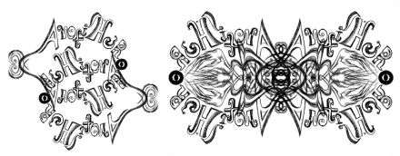 Antihero, hero on the wall Next I went back to the sketch. This time I took the whole word “antihero” and made few tests how it would behave in pattern. Cleaner version on the left is without the hand shapes, and it almost looks like nice and friendly. Almost too nice when there isn’t almost any sharp shapes.