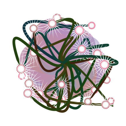 A tangle of randomly curving tentacles terminating in eyes superimposed on a cloud of ellipses.