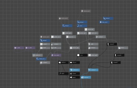 A few screens of our work in nodebox. As you can see, quite a few nodes. Maybe a few unnecessary ones, but it works.