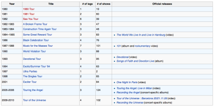 I wish to represent the activity of synth pop band Depeche Mode using the following factors: -members and the time they were in the band - and the task they had during that time - albums and singles released -periods when they were on tour