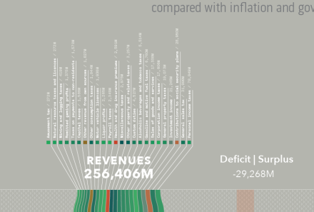 we managed to represent all the values we wanted to: Inflation rate, deficit/surplus and political parties, on top of actual values of the government expenditures/revenues.