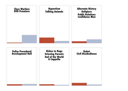 This project is about visualizing data base of keyword used in cinema’s pitch. We’ve chosen 3 informations which are a list of 600 keywords, their popularity (the number of movies they are related) and the profits made by those movies.
