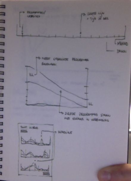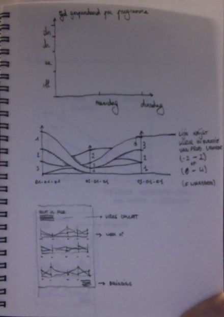 The final visualization would be a connection between the different categories per day, so a shift in productivity when approaching a deadline is visible, like the example in the third graph.