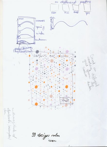 Our inspiration came from facebook group Humans of Vilnius.The idea was to collect colors from people of what they wear from pictures. We decided to separate it into four seasons: spring, summer, autumn, winter and compare it with other cities like New York, London and other. It can develope into moods of cities and compare seasons through human clothe’s colors.