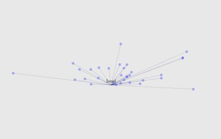 Getting started with making connections to Israel and Palestine from the countries that do not recognize them. With different colors.