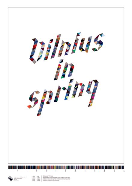 This poster represents Vilnius of colours in every month and we separate it in four seasons: winter, spring, summer, autumn. We created national lithuanian ornaments and type based on grid and colorize it.
